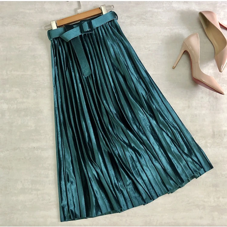 Chân váy nhung xếp ly kèm thắt lưng đồng mầu VAY93 free size