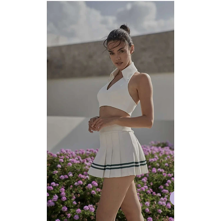 Chân váy thể thao dáng ngắn xòe kẻ xanh cao cấp