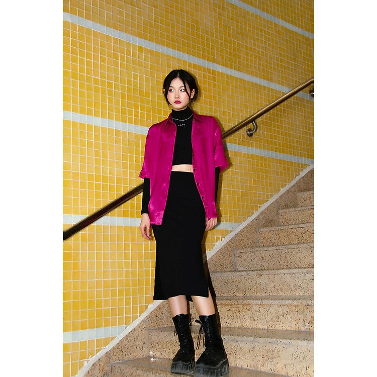 Chân váy thun xẻ đen