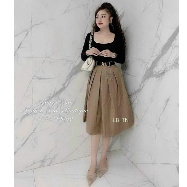 Chất liệu: vải kaki xịn ,mềm ko thô cứng nha. Lên váy sang hẳn cả con người các nàng ạ.