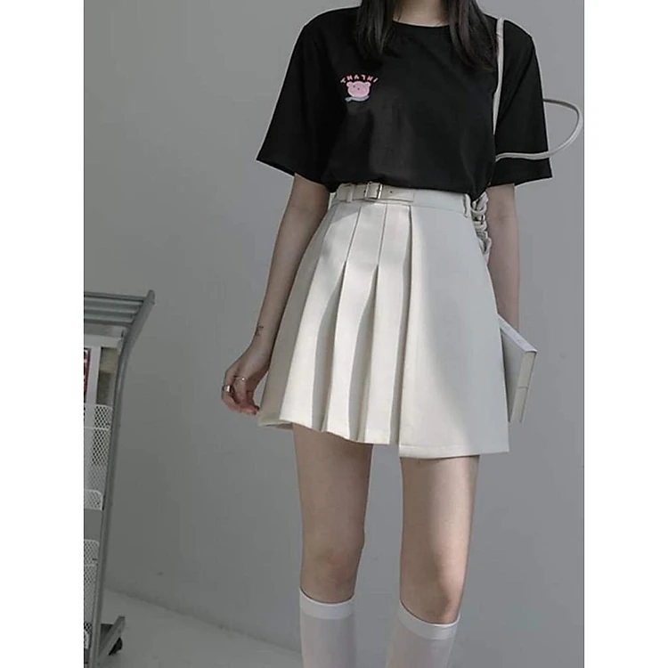 Chân váy xếp ly nữ eo cao hè 2021 -Chân váy ngắn dáng A phong cách thể thao năng động