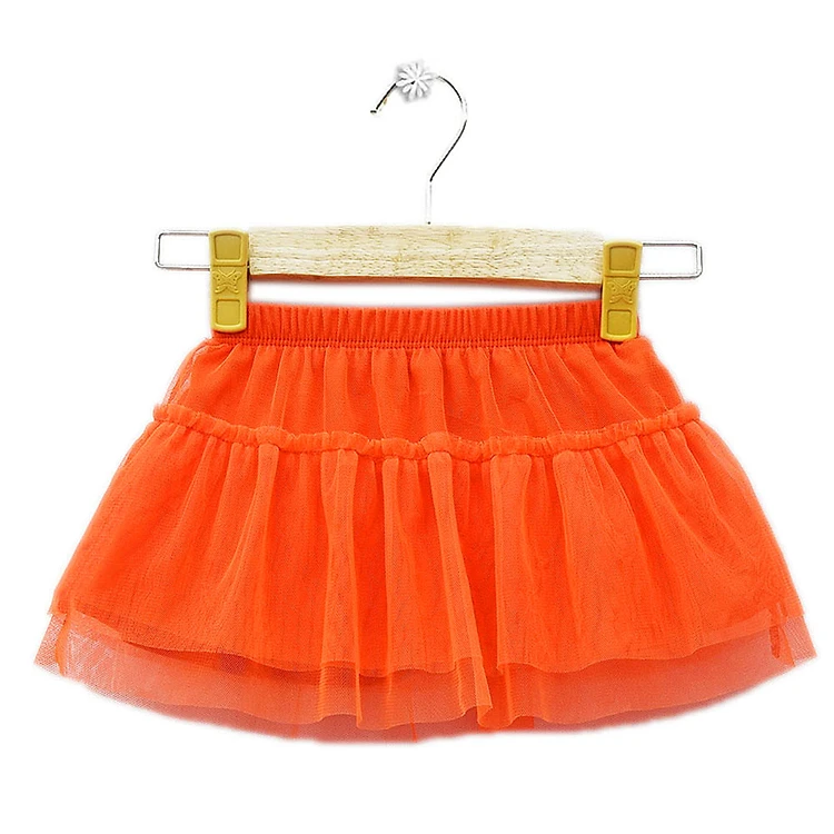 Chân váy được thiết kế xinh xắn với form xòe, may nhiều lớp tạo cảm giác bồng bềnh, đẹp mắt. Lớp ngoài bằng vải lưới tạo sự duyên dáng, nhẹ nhàng. Lưng thun co giãn vừa vặn hơn với vòng bụng các bé khi mặc, không để lại vết hằn trên da. Sản phẩm có màu cam chủ đạo mang đến phong cách nổi bật và sành điệu cho những nàng công chúa nhỏ.