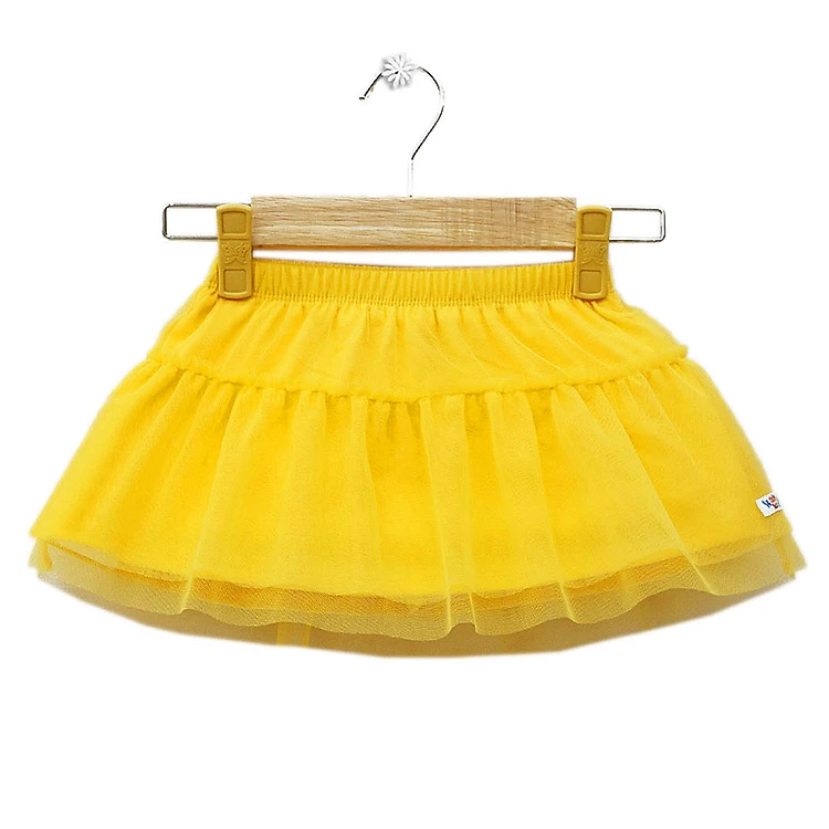 Chân váy được thiết kế xinh xắn với form xòe, may nhiều lớp tạo cảm giác bồng bềnh, đẹp mắt. Lớp ngoài bằng vải lưới tạo sự duyên dáng, nhẹ nhàng. Lưng thun co giãn vừa vặn hơn với vòng bụng các bé khi mặc, không để lại vết hằn trên da. Với tông màu vàng bắt mắt, váy giúp bé yêu tỏa sáng và sành điệu hơn dù xuất hiện ở bất cứ đâu.