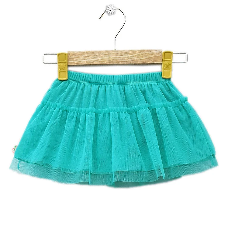 Chân váy được thiết kế xinh xắn với form xòe, may nhiều lớp tạo cảm giác bồng bềnh, đẹp mắt. Lớp ngoài bằng vải lưới tạo sự duyên dáng, nhẹ nhàng. Lưng thun co giãn vừa vặn hơn với vòng bụng các bé khi mặc, không để lại vết hằn trên da. Sản phẩm có màu xanh biển tươi tắn mang đến dáng vẻ khỏe khoắn, mới mẻ cho bé.
