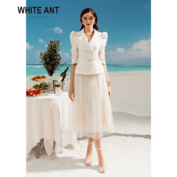 Chân Váy Xòe Nữ WHITE ANT Kyra Skirt Dáng Dài, Chất Liệu Lưới Phối Ren Chỉ Mềm Mại Cao Cấp 110100017