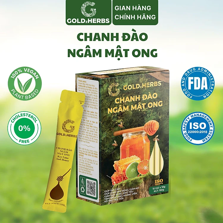 Chanh đào ngâm mật ong goldzherbs, 100% mật ong nguyên chất – Hũ 300g/ Hộp 15 gói