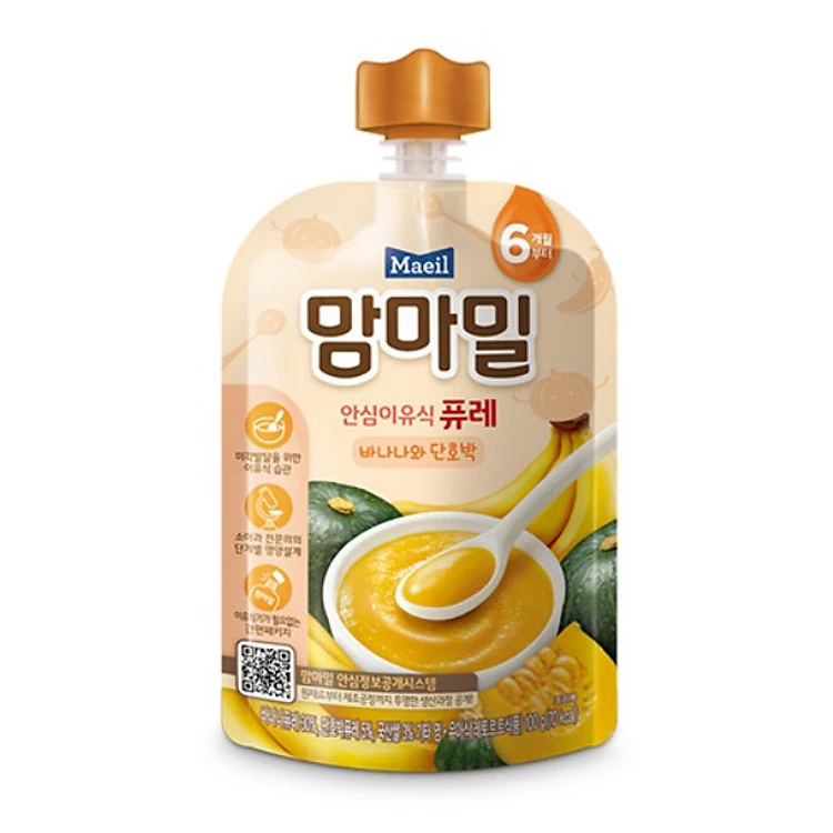 Sản phẩm dạng xay nhuyễn giúp kích thích phát triển vị giác cho bé trong thời kỳ ăn dặm. Đặc điểm sản phẩm: Dành cho bé từ 6 tháng. Tiện lợi với thiết kế dạng túi Công khai quy trình sản xuất từ nguyên liệu thô đến quy trình sản xuất, đóng gói Thực phẩm cho trẻ nhỏ chứa các thành phần dinh dưỡng và nguyên liệu an toàn, đảm bảo Không hương liệu, muối, đường và chất bảo quản Thành phần: Nước tinh khiết, chuối xay nhuyễn 30% (Philippine), khoai lang nấu chín (trong nước), bí ngô xay nhuyễn 5% (trong nước), gạo hữu cơ 3% (trong nước) Trọng lượng: 100g Xuất xứ: Chungcheongbukdo, Yeongdong-gun 770-20, Hàn Quốc. Hạn sử dụng: 12 tháng ở nhiệt độ phòng. Xem thêm: Nước ép Organic Yummy Yummy vị hoa quả 6M 125ml, Bánh gạo Organic Yummy Yummy Red Stage 1 12M 25g, Cháo hữu cơ Mam’ma Meal Chuối Và Bí Ngô Nghiền 6M 100g, Nước ép trái cây hữu cơ Yummy Yummy lê 4M 70ml Thương hiệu: Maeil Dairies (Hàn Quốc)