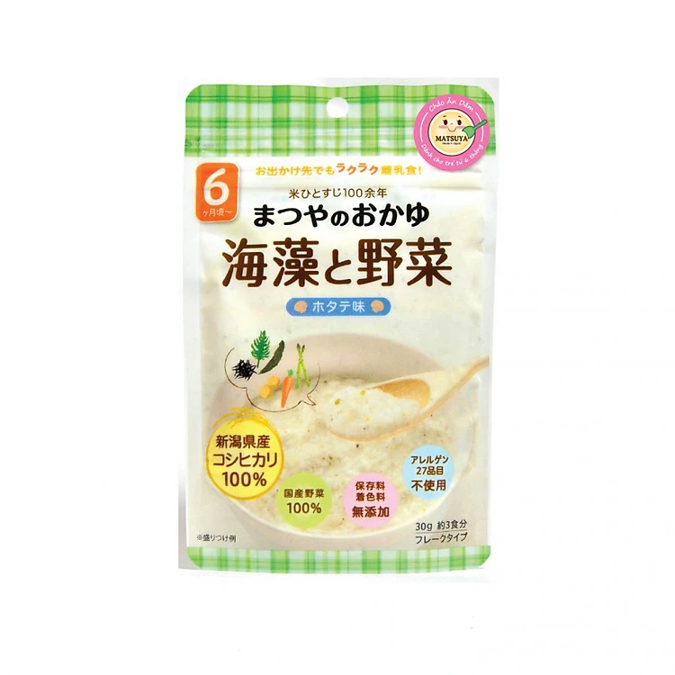 - Cháo Ăn Dặm Matsuya Rau Củ Và Rong Biển Vị Sò Điệp là sản phẩm ăn dặm nổi tiếng tại Nhật Bản, được các bà mẹ Nhật rất tin dùng.