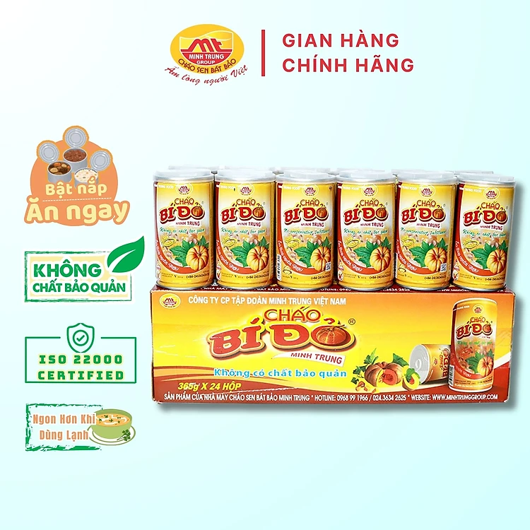 Cháo Bí Đỏ Minh Trung 365g Không Chất Bảo Quản - 1 Thùng 24 Lon ChaoBiDo24