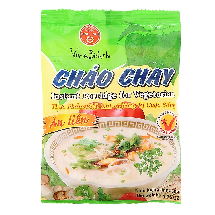 Cháo Chay Ăn Liền Bích Chi (50g/Gói) là sản phẩm tiện dụng, bổ dưỡng và tuyệt đối an toàn sức khỏe cho người dùng.