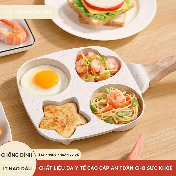 Chảo chiên rán trứng mini làm bánh 4 ngăn khuôn chảo hình sao và hình tròn
