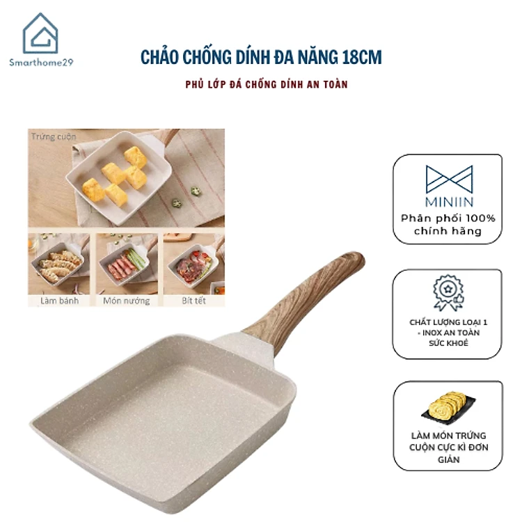 Chảo Chiên Trứng Hình Vuông Chống Dính Phong Cách Nhật Bản - Chảo Chống Dính 18CM - HÀNG CHÍNH HÃNG MINIIN