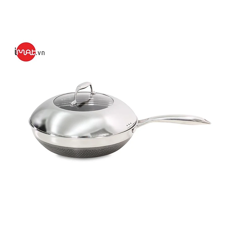 Chảo chống dính bếp từ iMat Hybrid kết hợp giữa lớp phủ điêu khắc chống dính Daikin và inox 430 chống xước