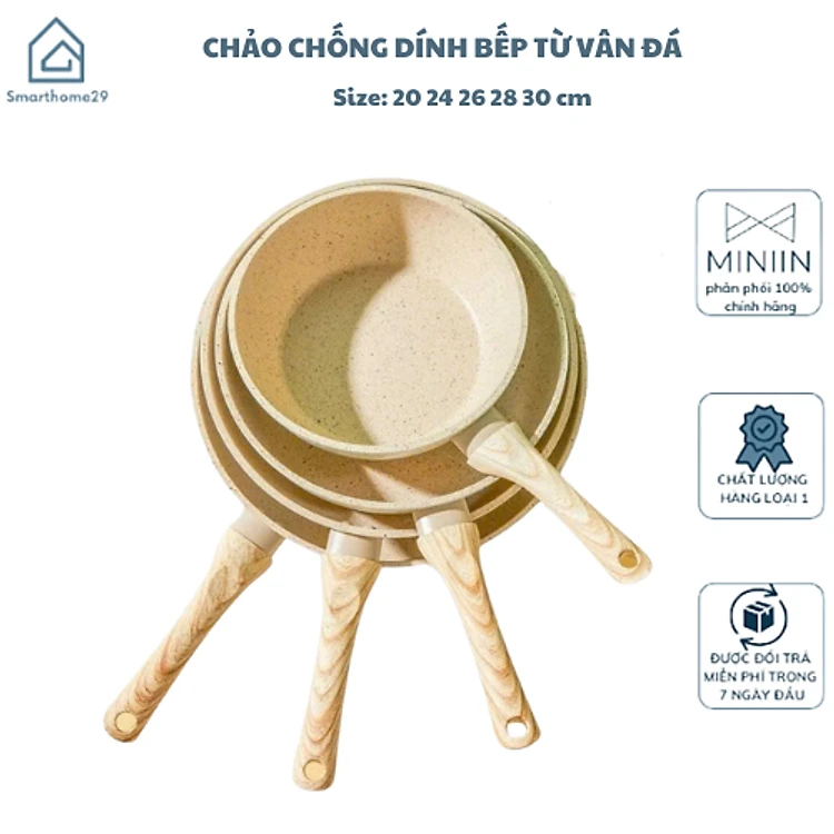 Chảo Chống Dính Bếp Từ Vân Đá Kiểu Nhật 20-30cm, Đáy Từ Ceramic Cán Gỗ [Hàng Loại Một] - HÀNG CHÍNH HÃNG MINIIN