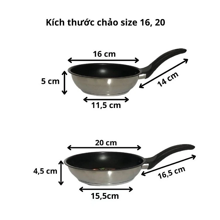Chảo Chống Dính Fivestar 3 đáy Inox 430 CD3Đ size 16/20/22/24/26/28(cm), dùng được bếp từ