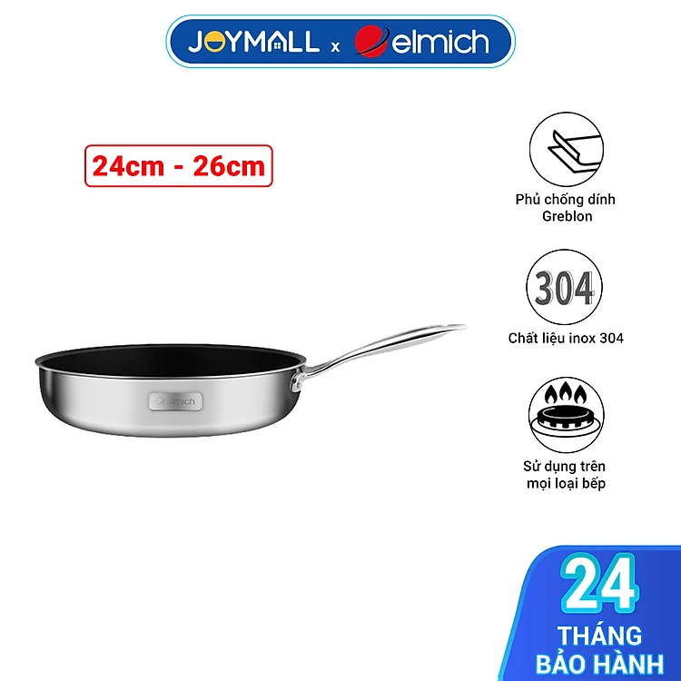Chảo chống dính Inox dập nguyên khối Elmich Trimax Classic EL-2703OL 26cm, EL-2702OL 24cm, Hàng chính hãng - JoyMall