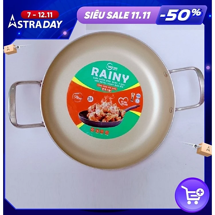 CHẢO CHỐNG DÍNH RAINY 2 QUAI INOX ROYAL 2.2 LY -26 cm , 28 cm và 30 cm- Hàng Chính Hãng