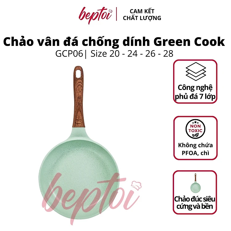 Chảo đúc đáy từ chống dính men đá ceramic xanh ngọc Green Cook GCP06 size 20-24-26-28 cm công nghệ Hàn Quốc