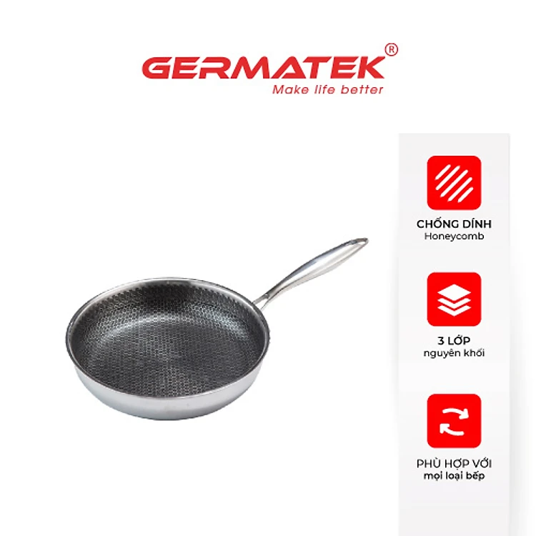 Chảo Germatek inox 3 lớp cao cấp nguyên khối Ruby GE-0310/11/12 Size 24, 26, 28cm
