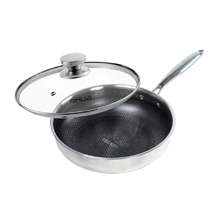 Chảo inox 18/10 đúc liền khối chống dính Blackcube Gu Me Hàn Quốc size 24/28cm đáy từ kèm vung kính, hành chính hãng
