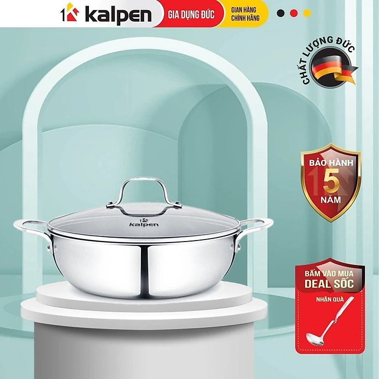 Chảo Lẩu INOX 304 Cao Cấp 3 Lớp Đúc Liền Nguyên Khối KP-8530 Size 30cm Hàng Chính Hãng KALPEN-GIA DỤNG ĐỨC