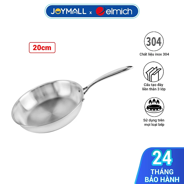 Chảo Nguyên Khối Sâu Lòng Inox 304 Elmich Trimax EL-3846 Nhiều Size,Hàng Chính Hãng, Đáy Từ -JoyMall
