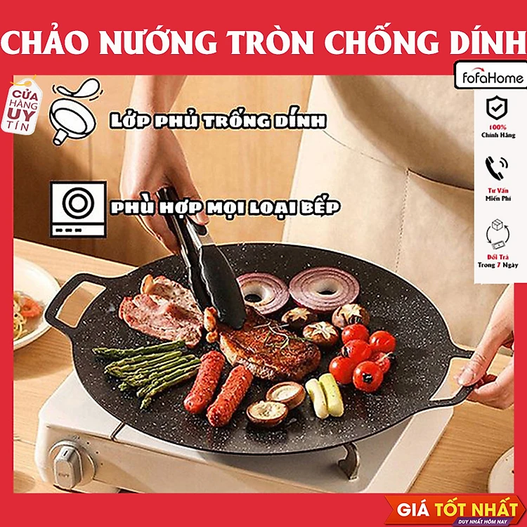 Chảo Nướng Đá Không Dầu Hàn Quốc Size 34cm, Chảo Nướng Thịt BBQ Chống Dính Dùng Được Cho Mọi Loại Bếp, Chất Liệu Cao Cấp