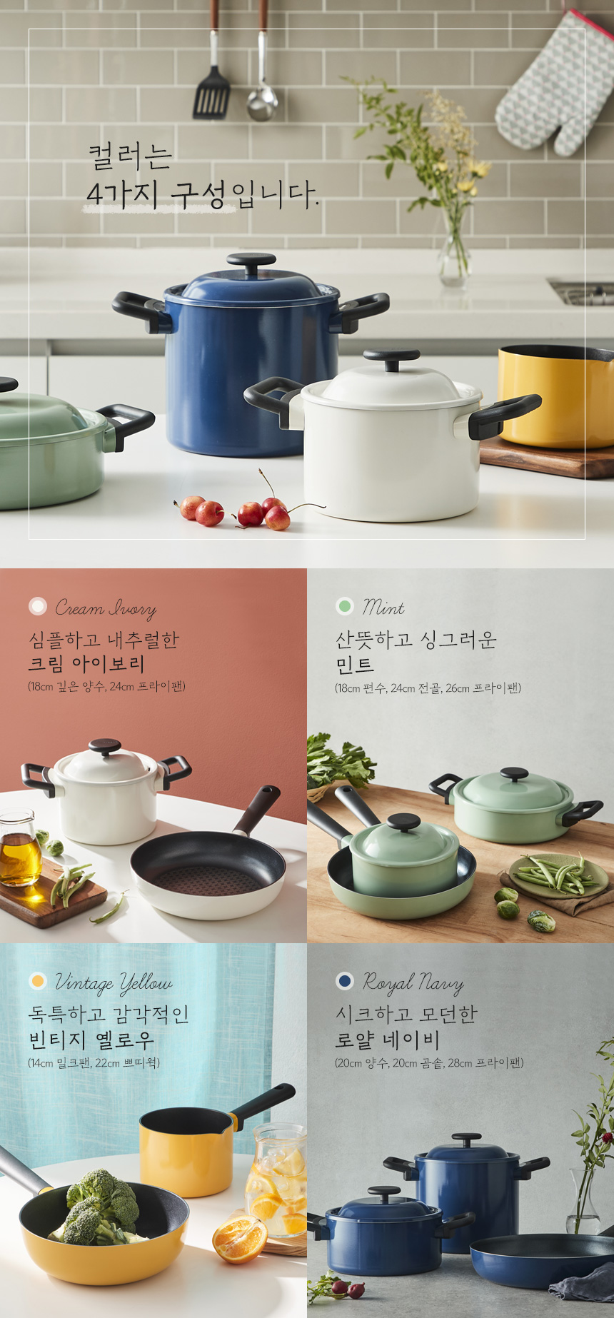 Dụng cụ nấu ăn thiết kế cổ điển đầy màu sắc đề cập đến lối sống đạt được những điều tốt đẹp với những yếu tố đơn giản. Nó đã đặt chức năng cần thiết và thiết kế đơn giản cho người hiện đại.