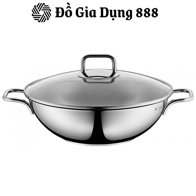 Chảo Sâu Lòng WMF Wok Party 28 cm, Chất Liệu Thép Không Gỉ, Nắp Kính Dày Dặn, Giữ Nhiệt Tốt, Tiết Kiệm Điện Năng, Nhập Khẩu Đức, Hàng Chính Hãng