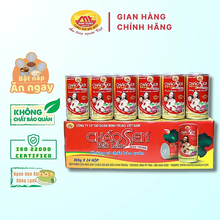 Cháo Sen Bát Bảo Minh Trung 365g Không Chất Bảo Quản - 1 Thùng 24 Lon CSBB 24