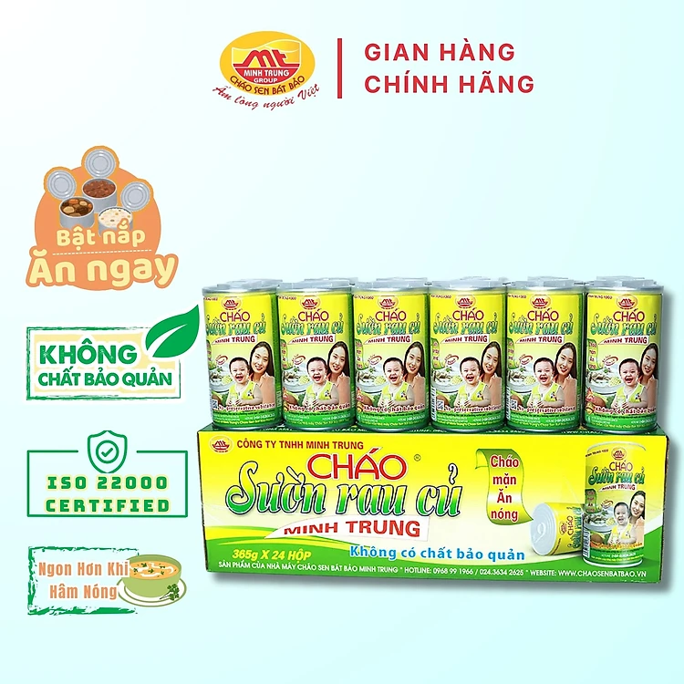 Cháo Sườn Rau Củ Minh Trung 365g Không Chất Bảo Quản - Thùng 24 Lon Cháo Sườn 24