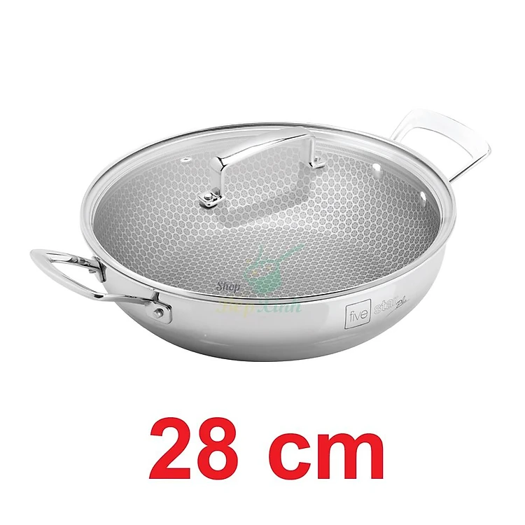 Chảo tổ ong sâu lòng 2 quai Blackcube FiveStar Plush 3 lớp đáy liền inox 304 ( 24cm / 26cm /28cm ), tặng 1 sạn inox