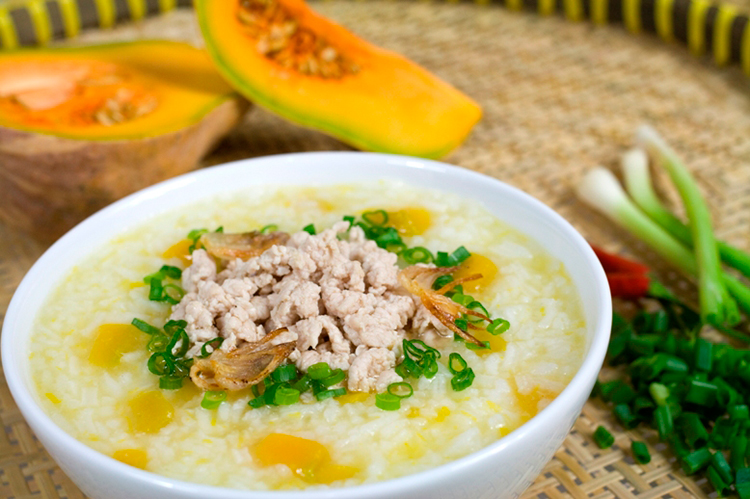 - Cháo có hương vị của thịt bằm cùng bí đỏ hòa quyện cung cấp chất đạm, bột đường, chất béo, chất xơ, vitamin và khoáng chất cần thiết cho một bữa ăn dinh đưỡng của bé.