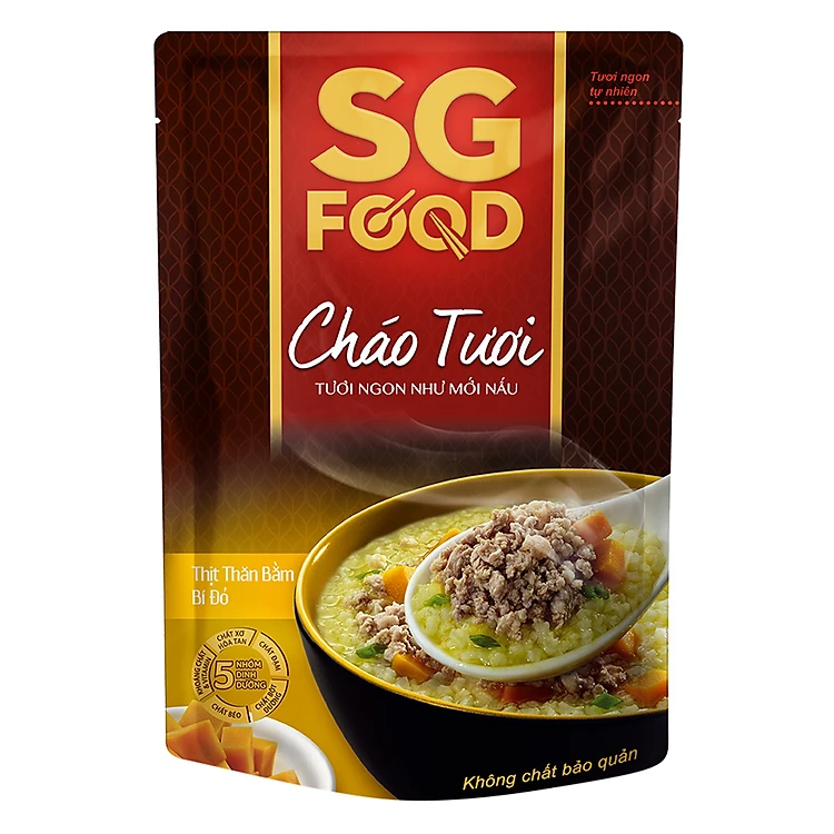 • Cháo tươi Sài Gòn Food cung cấp đủ 5 nhóm dinh dưỡng cần thiết cho cơ thể: Chất đạm - Chất bột đường - Chất béo - Khoáng chất và Vitamin - Chất xơ hòa tan.