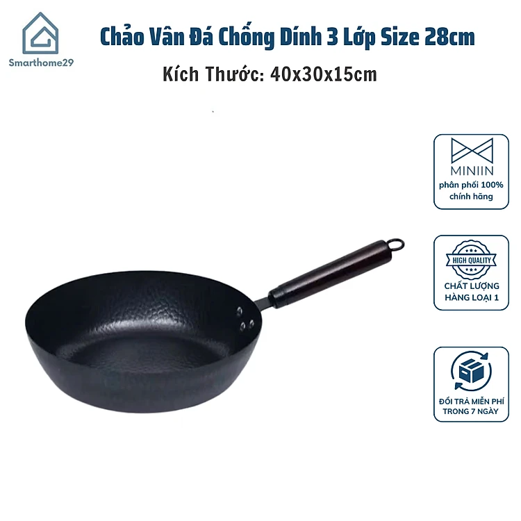 Chảo Vân Đá Chống Dính 3 Lớp Size 28cm, Chảo Chiên Ngập Dầu Sâu Lòng - HÀNG CHÍNH HÃNG MINIIN