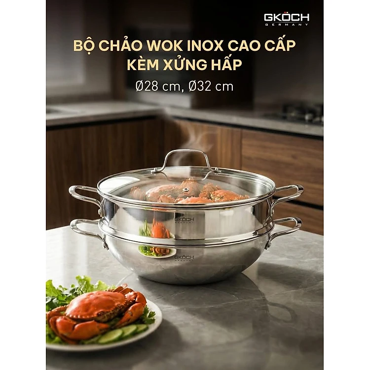 CHẢO WOK KÈM XỬNG HẤP GKÖCH – ĐẲNG CẤP BẾP ĐỨC Hàng chính hãng