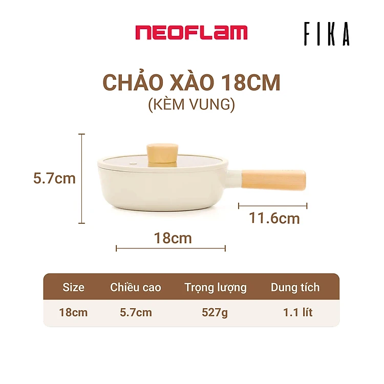 [Hàng chính hãng] Chảo xào cao cấp chống dính bếp từ cỡ nhỏ Neoflam Fika Baby 18cm, Made in Korea. Hàng có sẵn, giao ngay
