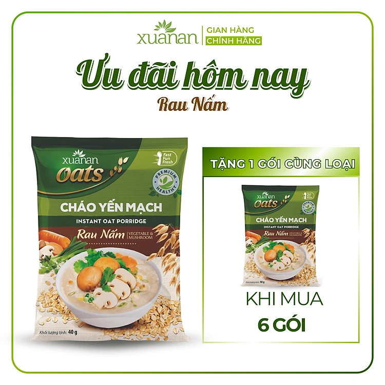 Cháo Yến Mạch Rau Nấm Xuân An Gói 40G [chay dùng được] (Mua 6 Gói Tặng Kèm 1 Gói)
