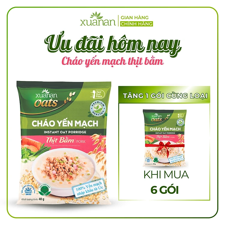 Cháo Yến Mạch Thịt Heo Bằm Xuân An Gói 40G (Mua 6 Gói Tặng Kèm 1 Gói )