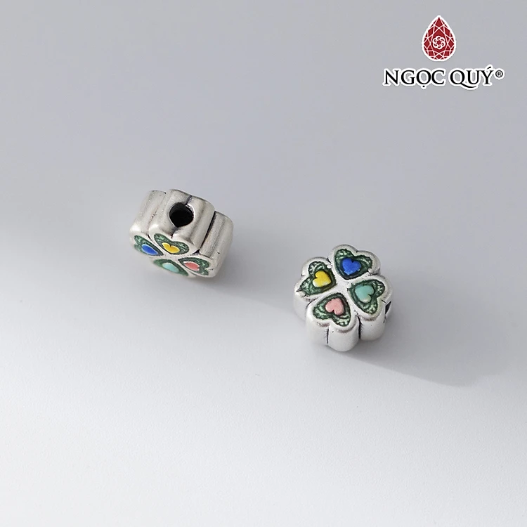 Charm bạc cỏ bốn lá xỏ ngang - Ngọc Quý Gemstones