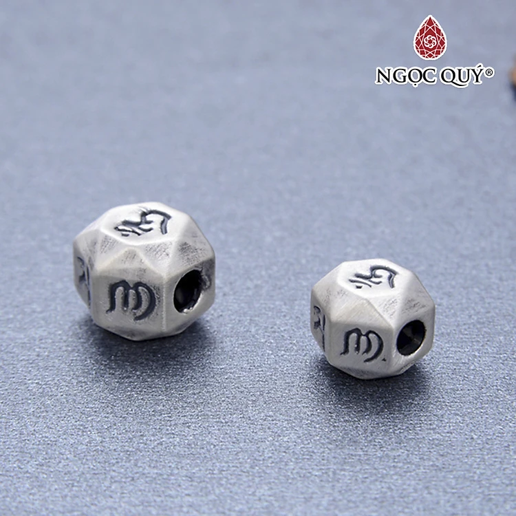 Charm bạc đa giác xỏ ngang lục tự minh chú - Ngọc Quý Gemstones