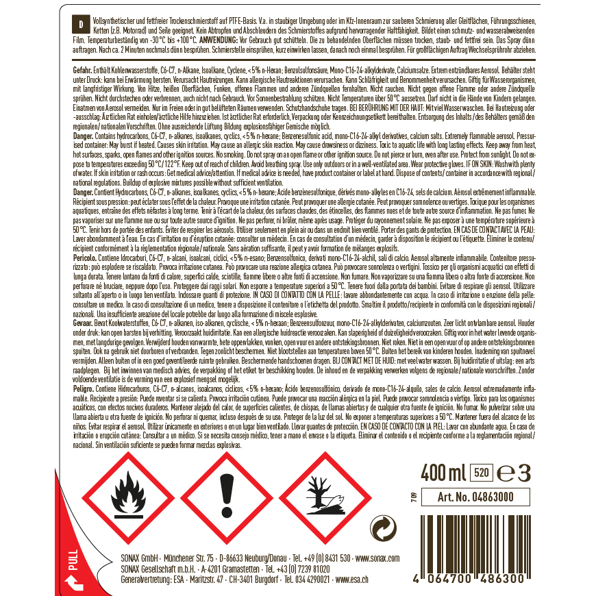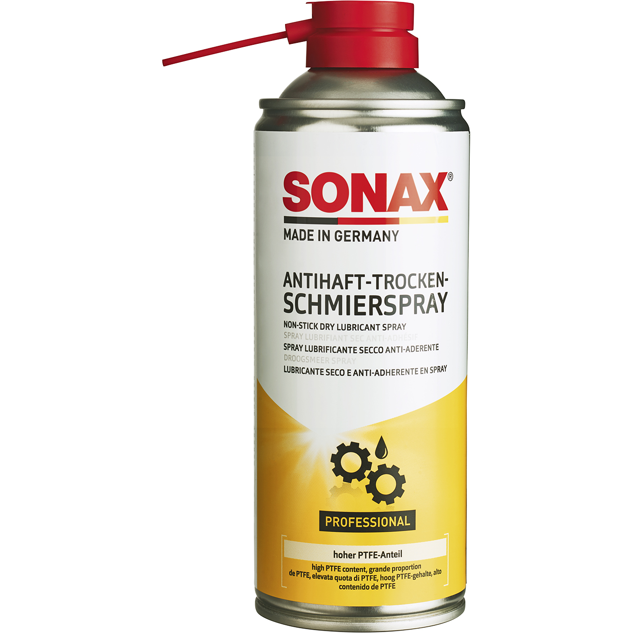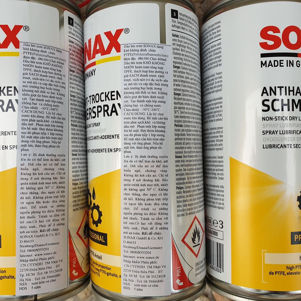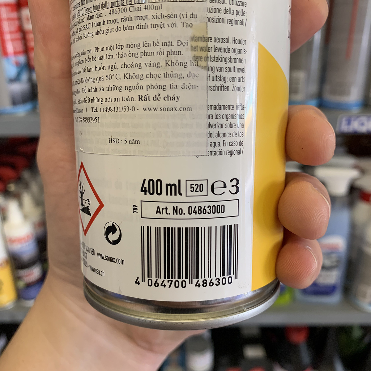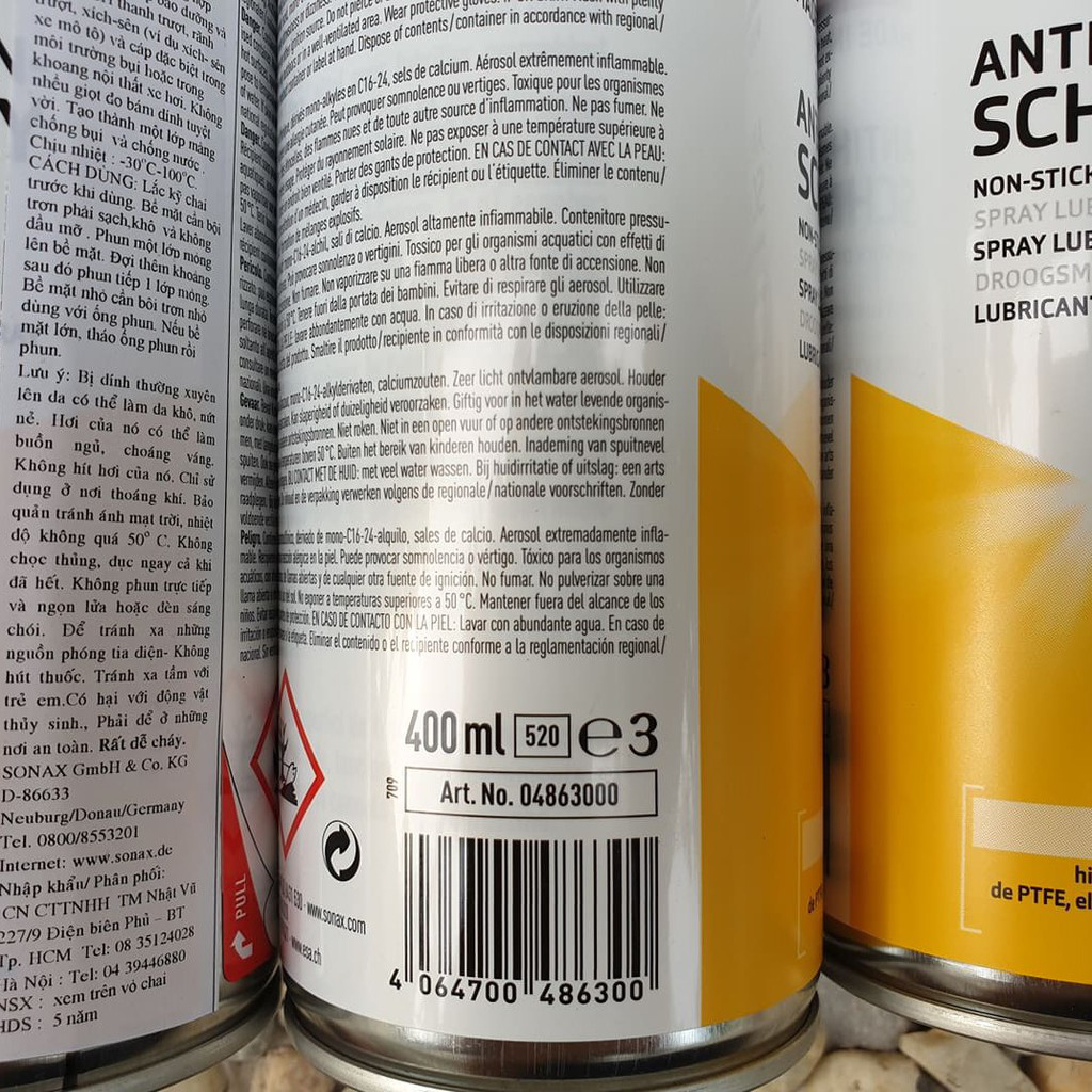 - Chất Bôi Trơn Khô Chuyên Dụng Khớp Chuyển Động Kim Loại SONAX Professional Dry Lube Spray 486300 400ml PTFE không chứa dầu mỡ, không bám bụi.