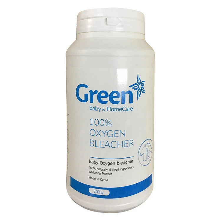 - Chất Tẩy Trắng Green Oxygen với thành phần oxy, natri percarbonate, dùng để giặt thường, tẩy vết bẩn trên vải quần áo, vệ sinh máy giặt, tiệt trùng bếp.