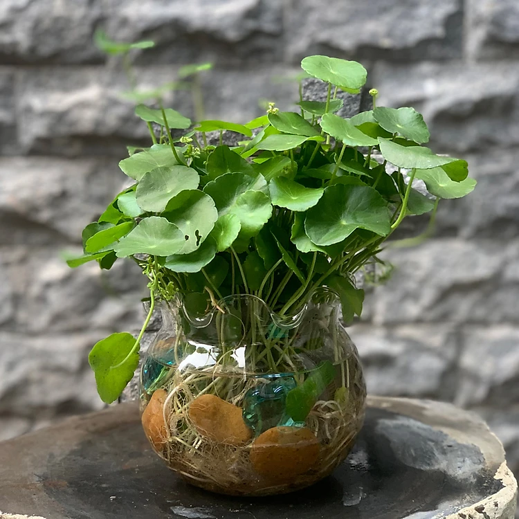 - Ngoài ra cỏ đồng tiền có thể trộng dạng thủy canh trong các chậu thủy tinh giúp lọc nước bẩn đồng thời tạo nên không gian sống ý nghĩa.