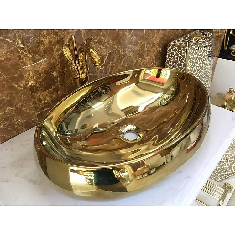 CHẬU RỬA MẶT, LAVABO ELIP MẠ VÀNG CAO CẤP NHẬP KHẨU CHÍNH HÃNG GROVES 065v (58x38x15 cm) (CHẬU)