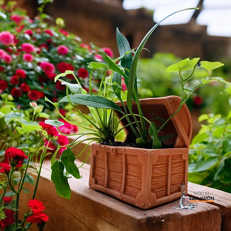 Chậu Gốm Đất Nung Hình Chiếc Rương Kho Báo