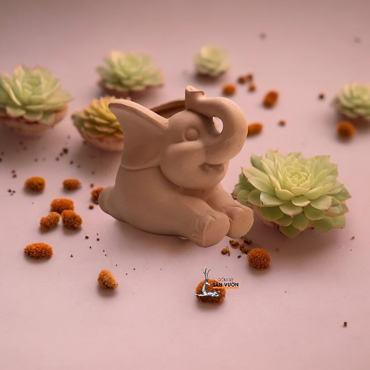 Chậu Gốm Đất Nung Hình Chú Voi Con