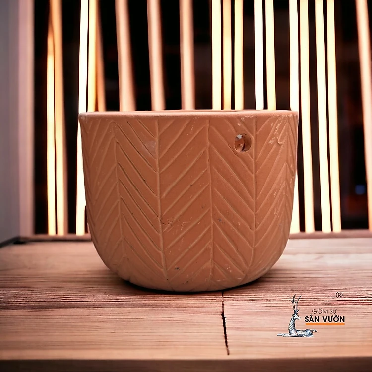 Chậu Gốm Đất Nung Hoa Văn Xương Cá D17cm X H13cm