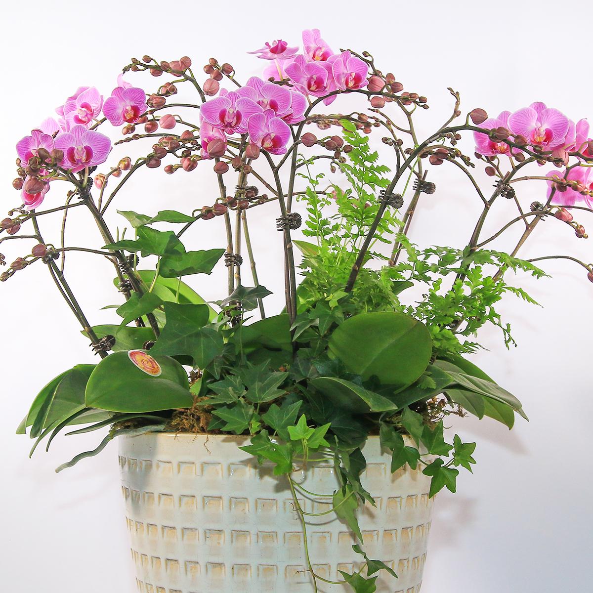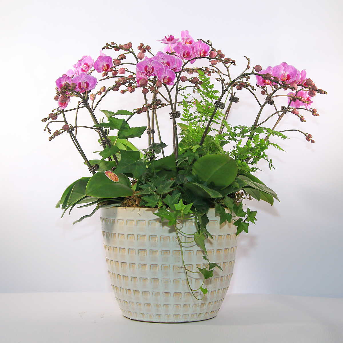 Chậu lan hồ điệp mini tím 8 cành gồm 8 cây hồ điệp nhỏ, cùng một số cây phụ liệu khác thích hợp để tặng sinh nhật, cấp trê phù hợp để trong bàn làm việc, phòng khá chậu cây cao 60 cm- rộng 60 cm.