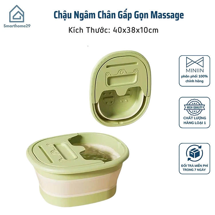 Chậu Ngâm Chân Gấp Gọn Massage Lòng Bàn Chân Có Nắp Đậy Giữ Nhiệt, Tặng Kèm Khăn - HÀNG CHÍNH HÃNG MINIIN